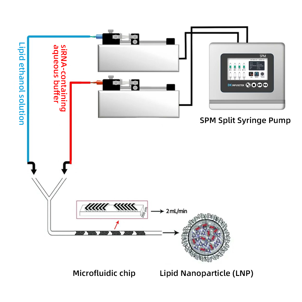 As a major technology in the biopharmaceutical field, LNP experiments have strict requirements on fluid transfer accuracy. The rate, volume and time of fluid delivery are all key factors in LNP technology. DK SPM split syringe pumps play an important role in this process, which is reflected in the following aspects: